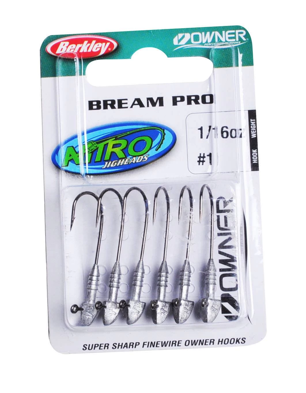 All Nitro Bream Pro jigheads use Owner light wire hooks, widely regarded as the best finesse hook on the market, these chemically sharpened, round bend, black nickel hooks are designed for light line fishing allowing maximum penetration with minimal pressure. Yet they still have enough strength to turn a rampaging fish from cover. Nitro is the only jighead built specifically for Berkley soft baits.