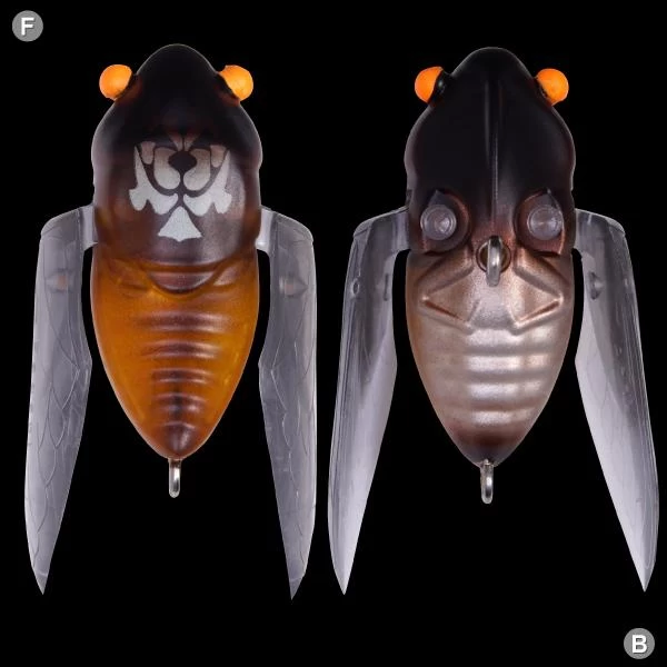 Tiny Siglett is a micro crawler bait that realistically imitates a spring cicada struggling on the water surface. In Steady Retrieve, high pitch crawl action is performed by alternately moving the blades. In Shaking, the target is invited by fine ripples generated from the wings of the elastomer material. In addition, a slow floating design that minimizes buoyancy achieves high hooking performance without playing delicate cutting tools.