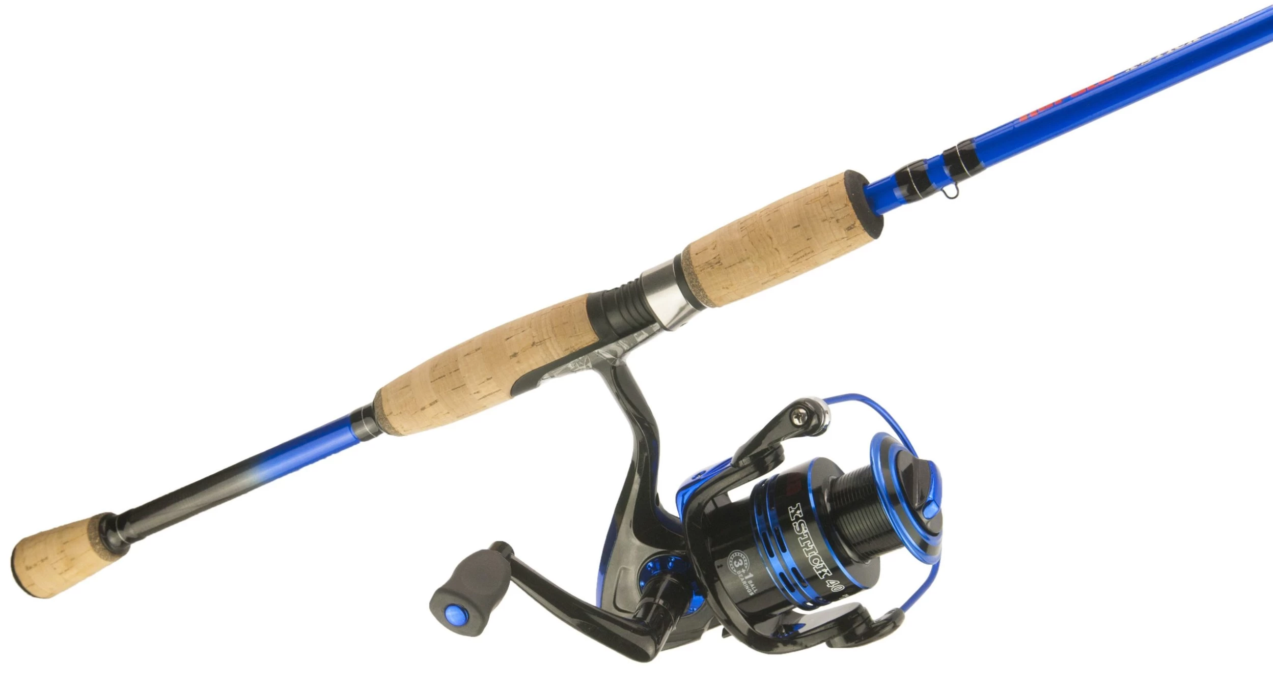 Rapala X Stick Combos feature 2 piece High Modulus graphite rods, lightweight ceramic guides, sensitive cork grips and a 3+1 ball bearing reel with oversize bail wire, folding handle and ported alloy spool with line.