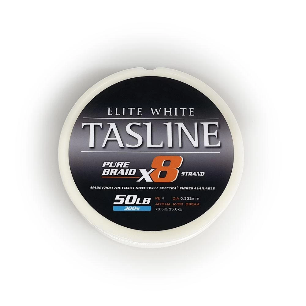 popping and jigging for trophy fish. Together with a unique heat treatment process developed by Tasline, this braid is tweaked to optimum performance. Manufactured and tested in small batches, to make sure Tasline Elite White is the best braid available.