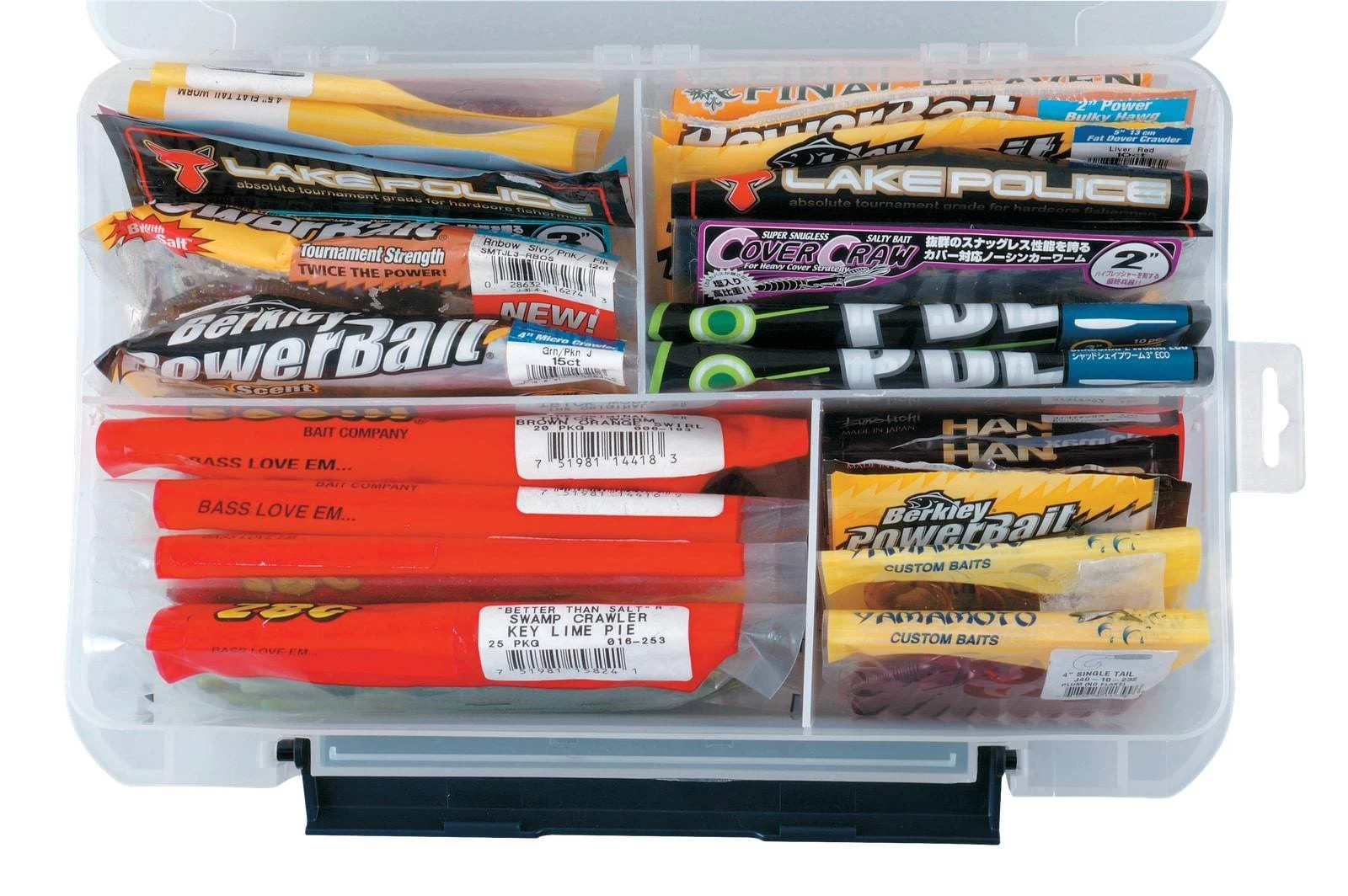 The Versus VS-3043NDD is an awesome, high quality compartment case that is a must have addition to any tackle box. The plastic fishing tackle case comes with 8 removable plastic dividers and 1 fixed center divider These dividers split the container into multiple compartments for various sized fishing tackle. With this, the VS-3043NDD also has an attached hinged lid with a strong latch closure that keeps the lid closed during transport.Â